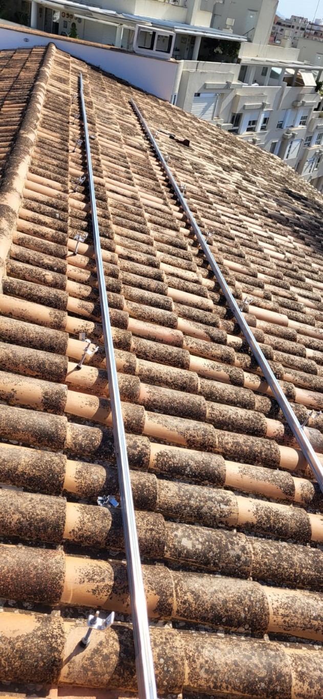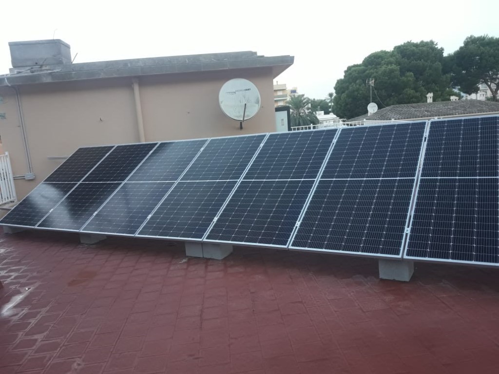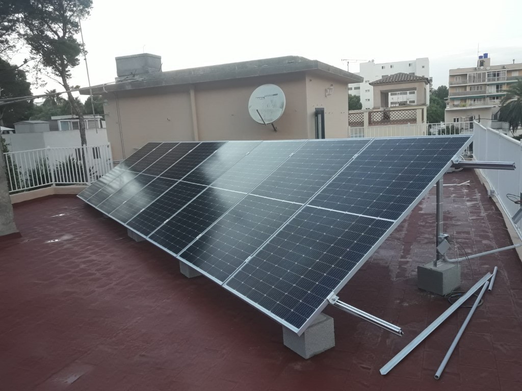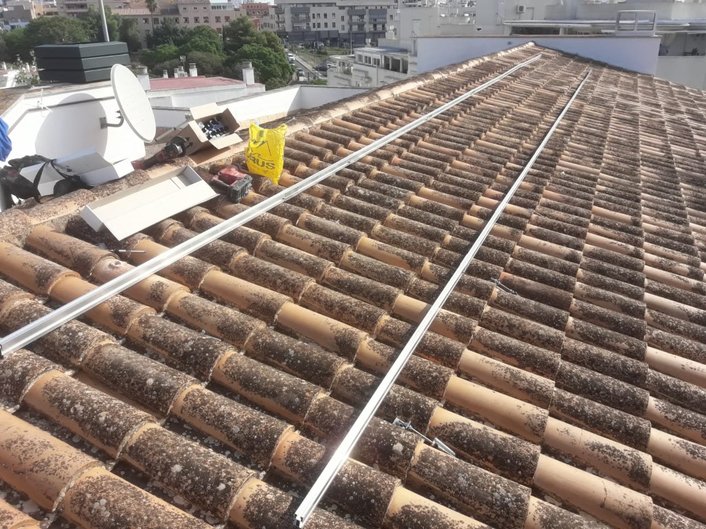 Instalación fotovoltaica en exterior Categoría: Instalaciones de gas, fontanería, electricidad, Instalación del sistema exterior de captación y suministro de energía fotovoltaica. La instalación se realizó en las mejores condiciones que facilitaran el posterior mantenimiento y limpieza de las placas y demás elementos.