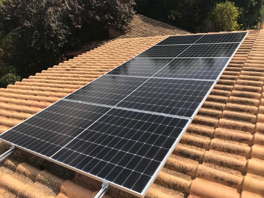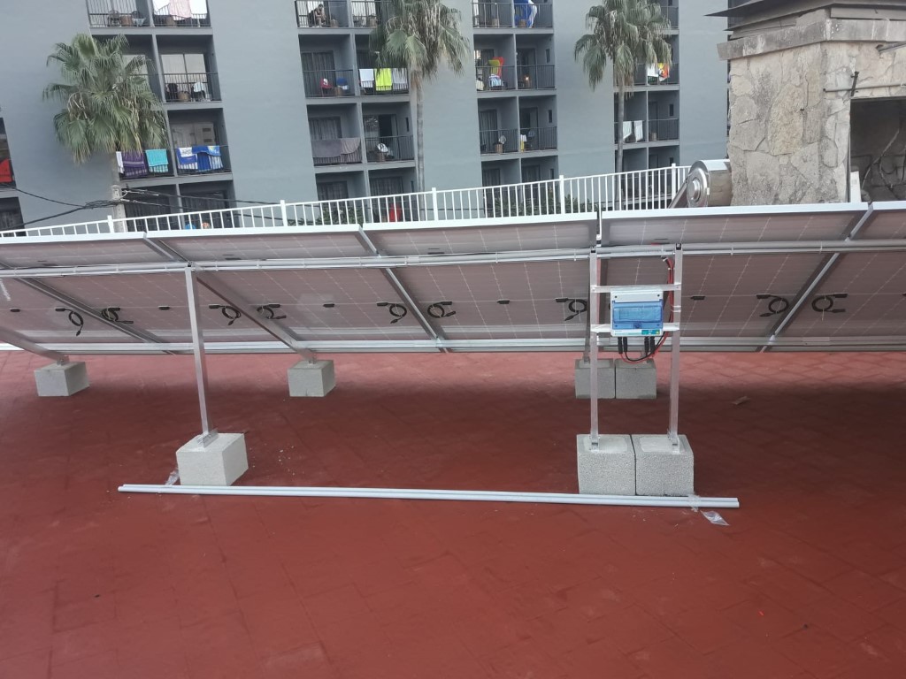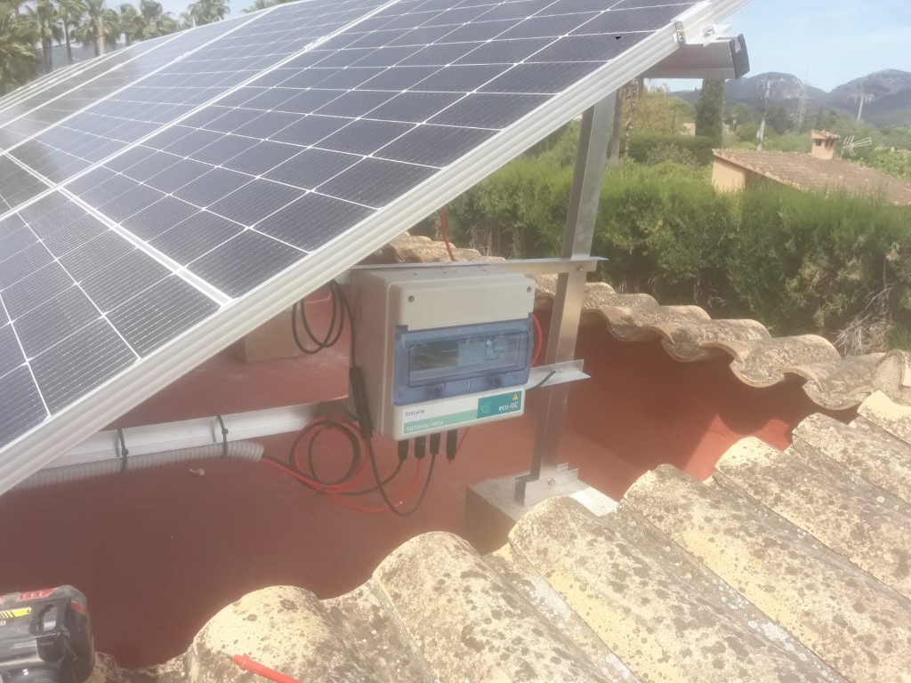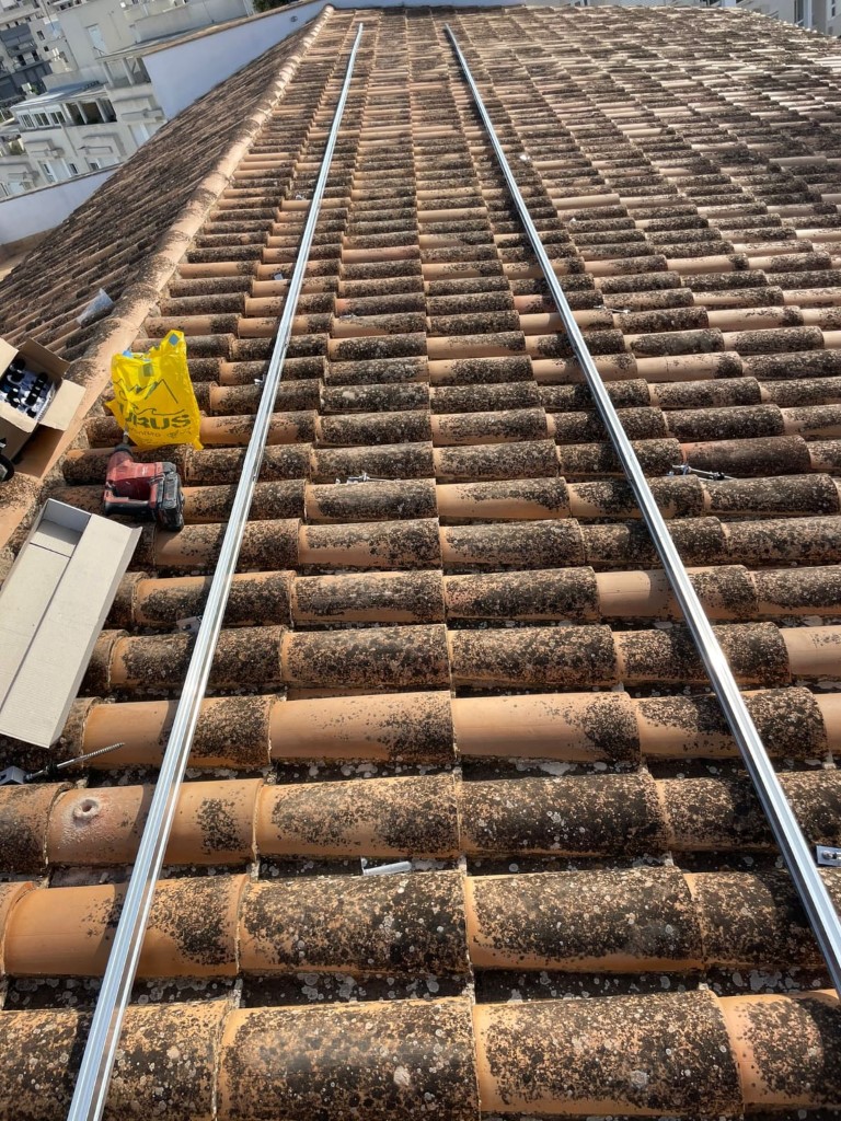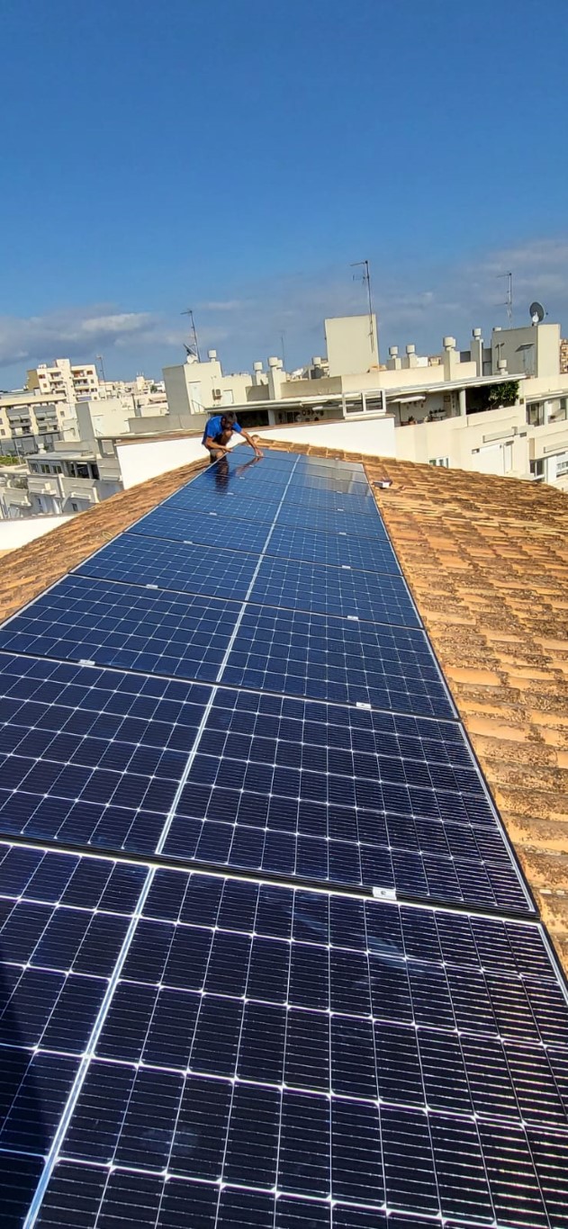Instalación fotovoltaica en exterior Categoría: Instalaciones de gas, fontanería, electricidad, Instalación del sistema exterior de captación y suministro de energía fotovoltaica. La instalación se realizó en las mejores condiciones que facilitaran el posterior mantenimiento y limpieza de las placas y demás elementos.
